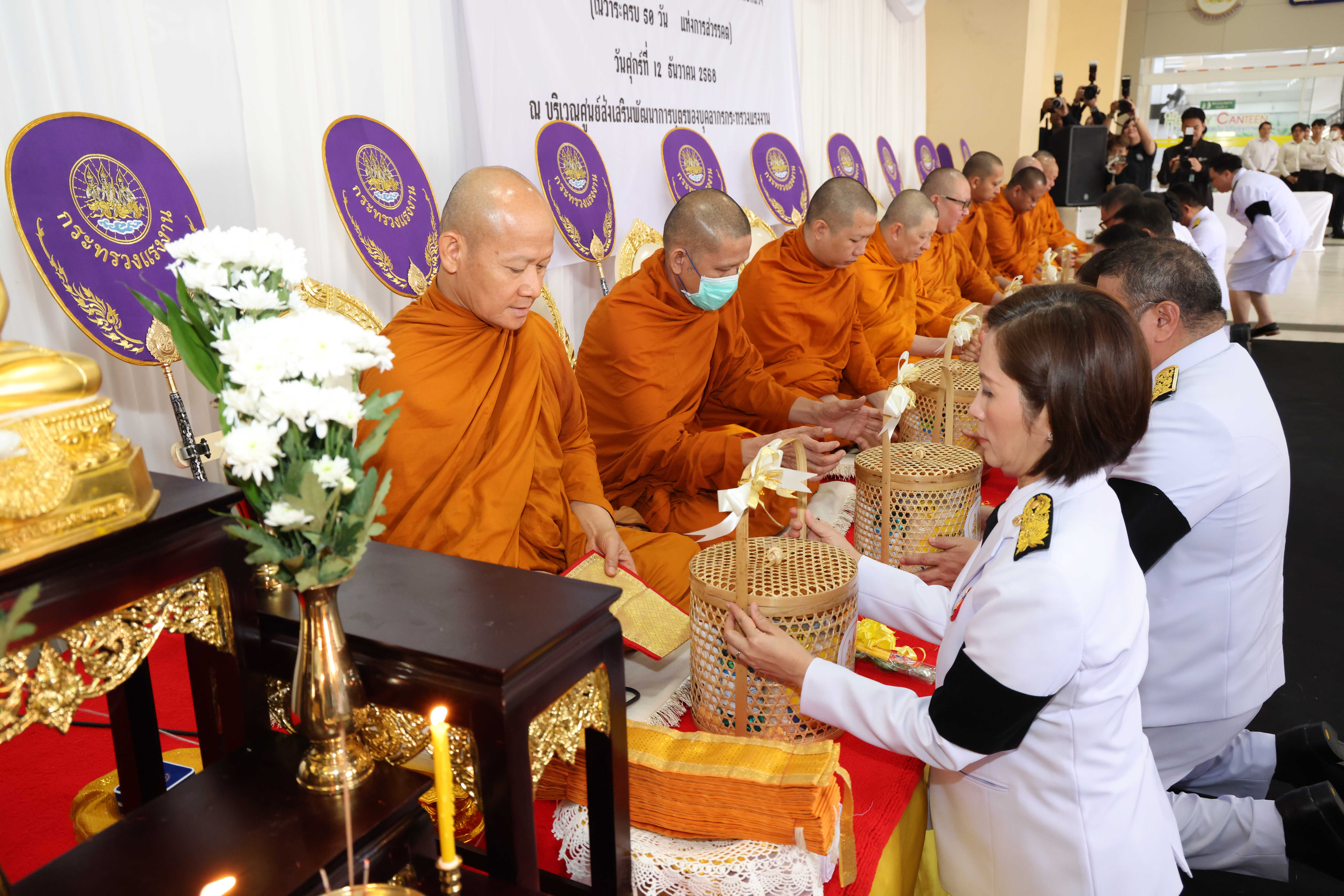 ‘ตรีนุช’ นำข้าราชการกระทรวงแรงงาน บำเพ็ญกุศลปัญญาสมวาร ทำบุญตักบาตร ถวายสมเด็จพระพันปีหลวง