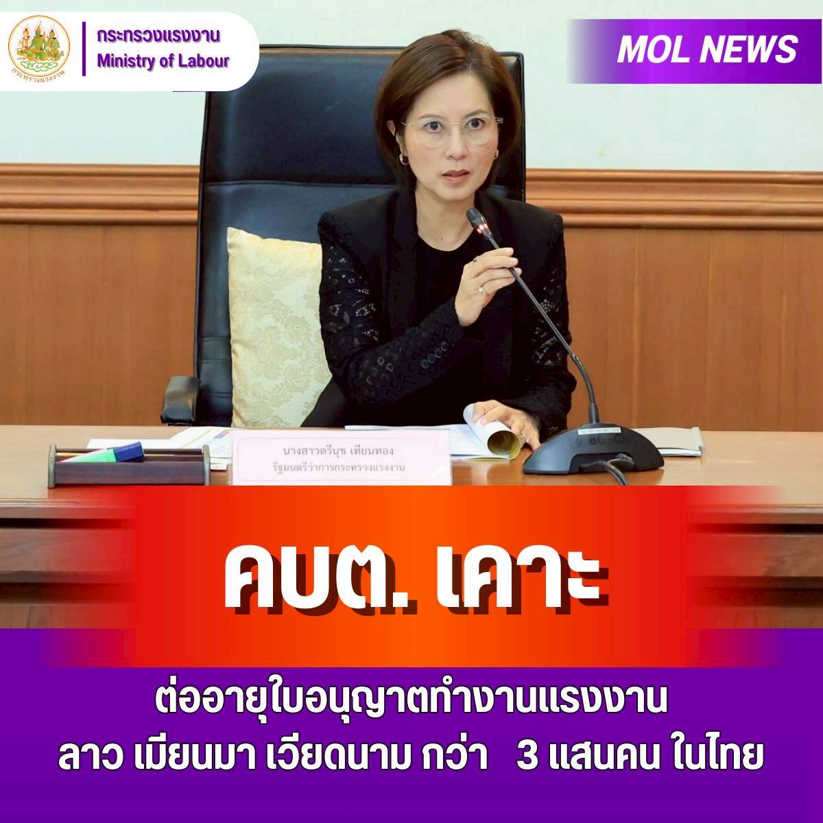 คบต.เคาะต่ออายุใบอนุญาตทำงานแรงงานลาว เมียนมา เวียดนาม กว่า 3 แสนคน ในไทย เตรียมนำเข้าครม.ให้ความเห็นชอบ “ตรีนุช”สั่งการกรมการจัดหางาน เร่งยกร่างประกาศกระทรวงแรงงานรองรับ ป้องกันผลกระทบต่อภาคการผลิตและเสถียรภาพด้านแรงงานของประเทศ